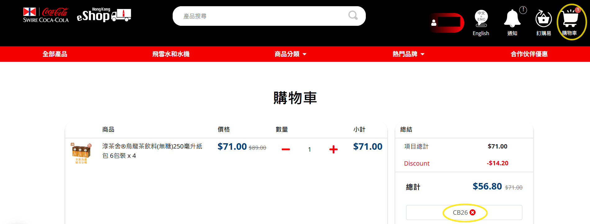 1. 再額外訂購包裝飲品^,並於購物車輸入優惠碼[CB26] ,即可享八折優惠。