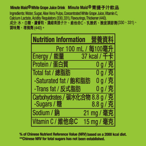 「Minute Maid」蘆薈粒青提 – 清新青提汁加入粒粒蘆薈,啖啖美味,啖啖爽口!香港製造,仲含豐富維他命C添!
